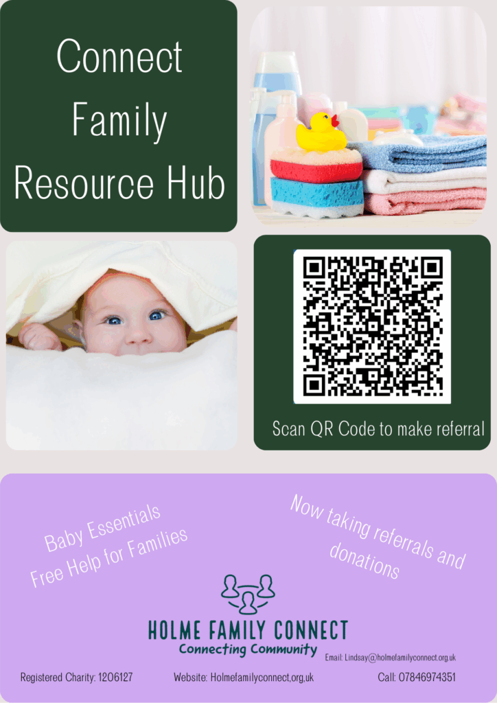 Our Family Resource Hub is being created to offer practical support to families in our community who may be struggling. The hub will provide essential items such as clothes, nappies, toiletries and baby equipment for parents and carers facing financial hardship or crisis.